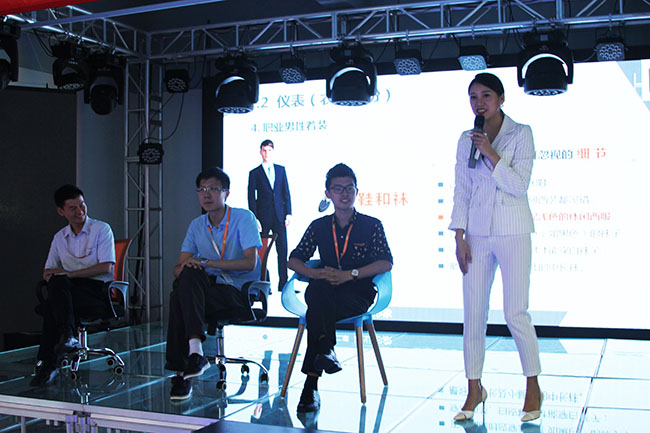 正所謂“一著不慎,滿(mǎn)盤(pán)皆輸”!霍老師強(qiáng)調(diào),在著裝方面,除了衣服與鞋子需關(guān)注樣式、質(zhì)地與顏色的搭配以外,襪子也是一個(gè)要注重的地方,并現(xiàn)場(chǎng)點(diǎn)兵點(diǎn)將,請(qǐng)大家一起找“亮點(diǎn)”。