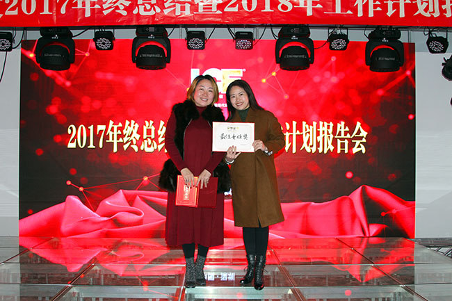 龍平芳女士為獲得“最佳貢獻獎”部門頒發(fā)證書